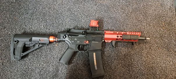 Zu den Veränderungen äußerlich wurde ein anderer Habdguard anderer Schaft sowie einige rote Teile verbaut.