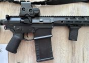 Wie auf den Fotos zu sehen ist ein kurzer Frontgriff montiert und ein RedDot. RedDot kann man umschalten zwischen gn/rt. Voll funktionsfähig