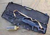 Deko-Patronengurt am Magazin, der Trageriemen und der Waffenkoffer sind mit dabei.