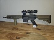 Moin ich verkaufe meine m4 tippman in der recon Ausführung. Joule wurde mit 0.25g getestet (1,00-1,30j) je nach Temperatur bbs etc. Habe die Elektronik einmal neu gemacht da sie mir durchgebrannt war. Jetzt sind mir aber die Motorkontakte abgerissen. Die Nozzle wurde getauscht gegen eine aus Metall. Der upper und lower wurde in Schwarz eingekocht. Bei weiteren Fragen gerne melden.
