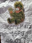 Der Patch basiert auf der bekannten Meme-Szene „Patrick with a Board Nailed to His Head“ aus der Zeichentrickserie SpongeBob SquarePants. In dieser taktischen Neuinterpretation trägt Patrick jedoch vollständige Militärausrüstung im Multicam-Stil und zwei gekreuzte Schraubschlüssel, die ihn als Combat Engineer / Pionier kennzeichnen.