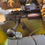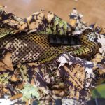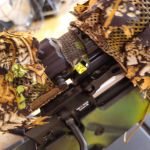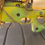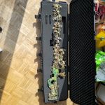 Sie wurde mit abwaschbarer Acrylfarbe in einem eher tropenähnlichen Tarnmuster von meinem Vorbesitzer lackiert (Schaft, Lauf, Rail). Ergänzend habe ich für die helleren Frühjahrsfarben den Novritsch 3D-Tarnüberzug für die Knifte und ihre Anbauteile gekauft. Der ist soweit neu und lediglich an den Schrauben, an die man mal ran muss, eingeschnitten worden (Wangenauflage, RMR-Rail).