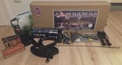 Des weiteren ist ein Zweibein, ein Walther 4X32 Campact Zielfernrohr, ein zwei-punkt sling, ein handgriff, ein speedloader, eine Laufsocke, BBs, zwei Akkus und eine Akku Schutztasche, sowie ein Laufreinigungsstab.