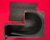 Designt wurde die Box für einen Xcortech X3200 Chronographen, der wird einfach draufgesetzt wird. Beim Durchschießen schlagen die BBs gegen die Gummimatte im Inneren der Box. Diese verhindert, dass die BBs splittern und Schrapnelle wieder herausfliegen könnten. Durch die Kurve werden die BBs nach unten abgelenkt und prallen mit verminderter Kraft gegen den Schieber und bleiben im unteren Bereich liegen.