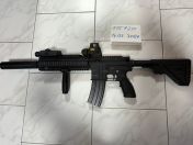 Ich biete hier eine HK416d an, die ich vor wenigen Monaten gebraucht erworben und optisch auf den A5-Stand umgerüstet habe (neuer Handschutz und Schulterstütze). Laut Vorbesitzer wurde die Waffe kaum genutzt, und auch bei mir kam sie nie zum Einsatz, da sie als reines Umbauprojekt diente.