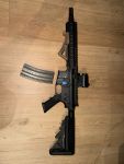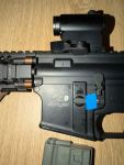 Das Ding war mal ein Bock II und wurde von mir mit einem kurzen Lauf und Handguard zu einem MK18 umgebaut. An sich läuft der Hase auch, allerdings finde ich gerade nicht die Zeit, das Teil wieder komplett zusammenzuhauen.