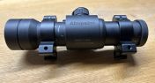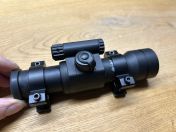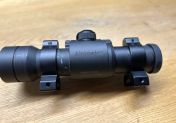 Zustand den Bildern zu entnehmen, soweit gut, einzig am Tubus sind ein paar Kratzer durch die Montage breiterer Mountringe zu sehen. Mit dazu gebe ich Oldschool Surefire Clone Mountringe die aktuell Montiert sind. ( 30€ ) Vorher hatte ich breite ARMS Ringe montiert die ich allerdings behalte, daher die Spuren.