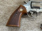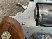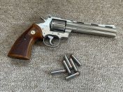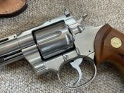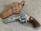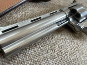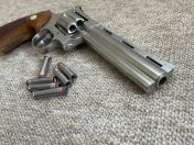 Es handelt sich um einen überarbeiteten King Arms Colt Python in Edelstahl-Optik mit 6" Lauf und Extras.