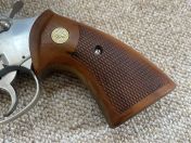 Zur weiteren Aufwertung wurden schöne, echte Holzgriffe mit goldenen Colt-Medallions angepasst und verbaut.