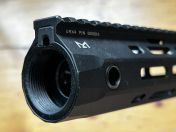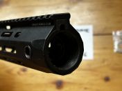 Zur Montage: der Handguard benötigt keine Barrelnut und wird einfach direkt auf das Gewinde des Gehäuses und den Outerbarrel aufgeschraubt und grob mit der Schiene nach oben ausgerichtet (ggf. muss mit Unterlegscheiben nachgeholfen werden, die auf den Fotos abgebildeten lege ich bei). Anschließend wird Gasblock und -tube montiert und der Handguard durch die Gastube zentriert und fixiert. Beachtet, dass der Outerbarrel nach der Anstoßplatte einen Durchmesser von ca. 21 mm nicht überschreiten sollte da der Handguard sonst ohne Nachbearbeitung nicht mehr drübergestülpt werden kann, falls euer Outerbarrel kurz vorm Gehäuseanstoß aufdickt, reicht es dort mit einer Feile etwas Material abzutragen und die bearbeitete Stelle verschwindet dann im hinteren Teil des Handguards und ist von außen nur durch die QD Ports zu sehen (hab ich selbst bei nem 5KU Outer gemacht). Ich habe noch Fotos eingefügt auf denen ein passendes Gehäuse mit passendem Outer abgebildet ist zur Anschauung.