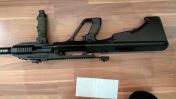 Angebaut ist ein Frontgriff mit Paracord Umwickelung für besseren griff. Die Zweibein Funktion von diesem ist aber defekt