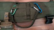 Zudem hat er ein selbst geflochtenen sehr stabilen Gurt den ich benutzt habe um eine hängende M4/M16 an meiner rechten Seite zu fixieren.