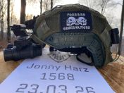 Der olivfarbene Helm wird durch den ATACS FG Helmbezug ergänzt, wodurch ein moderner, feldtauglicher Look entsteht. Das enthaltene NVG Dummy mit schwarzer Halterung sorgt für eine authentische Optik, wie sie häufig in aktuellen MilSim- oder Special-Forces-Setups zu sehen ist.