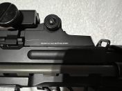 Über der Auswurföffnung wird normalerweise eine kleine Picatinny-Schiene mitgeliefert. Diese ist nicht mehr vorhanden, da sie bereits beim Kauf defekt war. Ersetzt wurde sie von Begadi durch einen Adapter, der aufgesetzt wird. Funktioniert ebenfalls, sitzt jedoch etwas höher. Könnte daher für Träger von Mandible oder Gehörschutz gut sein.