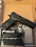 Die von KJ Works und ASG in Zusammenarbeit entwickelte Nachfertigung der CZ P-09 Duty. Dank der CZ-Lizenz sind auf dem Metallschlitten sowie dem Pistolenrahmen und sogar am Magazin sämtliche Originalmarkings sauber eingearbeitet. Hergestellt ist die maßstabsgetreue Nachbildung mit Gas-Blow-Back Schusssystem aus stabilem Polymer-Verbundkunststoff und Metallteilen. Alle genannten Komponenten sorgen für eine hohe Zuverlässigkeit sowie Robustheit im Einsatz und machen die CZ P-09 Duty für Spieler aber auch Sammler sehr interessant.