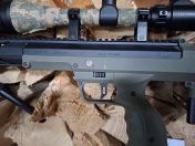 Zudem sind ein komplett einstellbares Sutter V8 Zweibein sowie das Zielfernrohr mit 6 bis 24-facher Vergrößerung mit optional beleuchtetem Absehen montiert, können aber gegen Kostenreduzierung auch abgenommen werden. An der Lauffront befindet sich eine Schallämpferhülle, welche jedoch nur übergeschoben wurde und als Schutz dient!