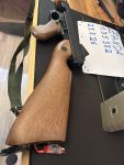 Sie läuft stabil und fühlt sich gut an! Zur knifte gehören 6 kunstoff Magazine und 2 Blech high cap Magazine. Dazu ein 2slot Magazin Gürtel welcher am Oberschenkel zum Tragen ist.