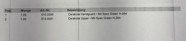Wurde bei Bad Agency im Nachgang Ceracote beschichtet - in H264 Mil Spec Green. Rechnung ist auch noch vorhanden.