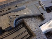 Schaft: Der originale Stock wurde gegen einen E&C Sopmod M4 Nylon Crane Stock getauscht, um deutlich mehr Platz für Akkus zu bieten.