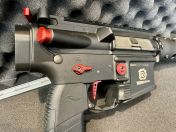 Die VFC Avalon wird angetrieben durch die Polarstar Fusion Engine und funktioniert mit der roten Nozzle bei rund 0,9-1,5J (abhängig von BB-Gewicht und PSI). Das Design sticht insbesondere durch viele rote Akzente hervor. Zum erfolgreichen Spielen wird also nur noch ein kleiner LiPo-Akku für die Polarstar Fusion Engine FCU (semi) sowie ein HP-Flaschenset benötigt.