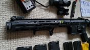 Hi, verkaufe dieses gesamte Set. Durch den Einbau eines MAXX speed Trigger ist ein abzugsweg von 1mm eingestellt und somit eine sehr schnelle Schussabfolge möglich. Außerdem wurde das Standart Hop up mit einem maple leaf ausgetauscht. Alle originalteile sind trotzdem enthalten. Ein passender 11.1V Akku sowie ladegerät ist mitenthalten. Durch das Federschnellwechselsystem kann sie schnell auf die gewünschte Anzahl an Joule umgebaut werden. Mitenthalten sind 3 Lonex 200 Schuss Magazine sowie diverse andere M4 Magazine. Außerdem ein Walther Red dot visier und Laufsocke. Bei Fragen gerne melden. Versandkosten trägt der Käufer.