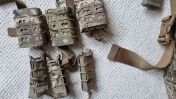 Hi, verkaufe diesen Novritsch Battlebelt mit Velicro Battlebelt, 3 pouches für Pistolenmagazine, 3 für m4 magazine und dump pouch in Multicam. Neupreis lag bei allem über 135€