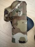 zum Verkauf steht ein original IMI Holster. Der Zustand ist sehr gut, es hat zwischen Null und einem Spiel mitgemacht und lag seither in der Restekiste. Leider steht keine Angabe auf dem Holster, es müsste für eine HK P8 bzw. USP passend sein, nagelt mich da aber nicht genau drauf fest. Es passt aber auch eine GHK Glock 17 Gen 3 mit Steel Slide sauber in das Holster. Beklebt wurde das Holster mit original Gearskin Folie in Multicam. Wer das nicht möchte, kann diese aber auch wieder entfernen.