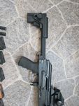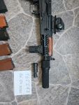 Verkaufe meine E&L AK74U Gen 4 von Begadi, da ich das Hobby nicht mehr weiterverfolge. Das Gewehr funktioniert einwandfrei und wurde selten bespielt. Ich habe einen Schalldämpfer, Visier, Begadi Alu Handguard und PT-3 Stock verbaut. Lege 7 Midcaps und 2 11.1V LiPo Akkus mit 1300 mAh dazu. Die Original E&L Bauteile habe ich nicht mehr