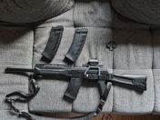 Dabei ist ein Crossfire RedDot mit lebenslanger Garantie und eine passende Montage. Zusätzlich zu dem 45(15x3)Schuss magazin sind 2 90(30x3)Schuss Magazine dabei alle perfekt dicht. Und eine verstellbare Sling.