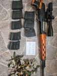 Verkaufe Begadi SVD, da ich das Hobby nicht mehr weiterverfolge. Das Gewehr funktioniert einwandfrei und wurde kein mal bespielt. Der Griff ist mit Tape umwickelt, da der Griff nach der Lieferung leicht gerissen angekommen ist. Lege ein Begadi SharpAim Scope, 2 11.1V LiPo Akkus mit 1300 mAh, 8 Magazine und 2 Tarnstreifen dazu.