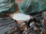 Einmal ausgebreitet, der Rest in den Tüten.
