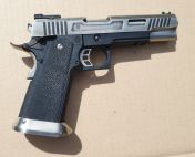 Biete eine WE Hi-Capa 5.1 "T-Rex", hatte sie hier selbst gebraucht gekauft und habe sie wie der Vorbesitzer eigentlich nie benutzt.
