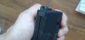An der Seite vom Adapter sind noch Klebeband dran, damit es nicht im Magazinschacht wackelt. Das kann man einfach abziehen oder reduzieren, je nach Magazinschacht.