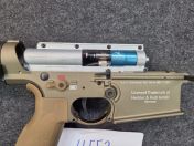 Wie man schon erkennen kann wurde an der Airsoft ein HPA Umbau vorgenommen. Intern ist aktuell eine Gate Pulsar S Engine (440€) drin mit der wir auf etwa 2,2J kommen.