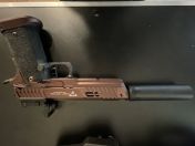 dazu komme ein Schalldämpfer incl Tracer und ein verbaut , reddot zum einklappen , Holster , ein Gas Magazin und ein passender Koffer und der Pistolen Ständer wie zu sehen.