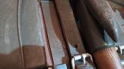 Dabei ist der alte Klappspaten in der schweren Ausführung aus den 60ern mit Erdsporn.