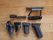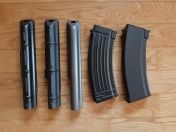 Was für euch vielleicht fast interessanter sein könnte, ist das Zubehör, welches ich euch im Gesamtpaket mitschicke - darunter Optiken, Griffe, Flash-Hider, 2 Magazine, Rails etc.: alles auf AK-Modelle ausgelegt, wie man sehen kann😊.