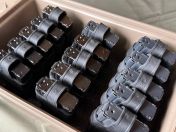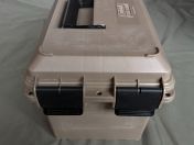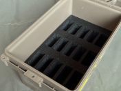 Ich verkaufe hier eine gebrauchte und voll funktionsfähige Magazinbox aus Polymer von MTM in der Farbe Dark Earth. Die Kiste hat entsprechende äußerliche Gebrauchsspuren in Form von Kratzern. Im Inneren verfügt sie über ein eingelassenes Schaumpolster mit Aussparungen für bis zu 15 AR15, M4, M16 oder andere Magazine mit ähnlichen Ausmaßen. Zudem ist die Kiste über einen O-Ring abgedichtet und hat Ösen zum anbringen von bis zu 3 Vorhängeschlössern. Die Maße mit den Griffen betragen 39cm x 23cm x 22cm (L x B x H).
