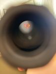 Durch den montierten Schutz konnte meine Kamera das Absehen leider nicht richtig scharf stellen. Ich habe aber zusätzlich ein Foto durch einen Magnifier gemacht. Darauf erkennt man sowohl die Form des Reticles als auch, dass das Bild sehr hochauflösend ist und durch den Magnifier nicht unscharf oder verpixelt wirkt.