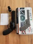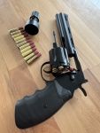 Hi, biete hier meine Magnum an, bin Sammler und daher nur im Garten auf Dosen geschossen. Mit dabei sind Ersatzpatronen, Futteral mit Gürtel und ein Schnelllader. Nix fürs Spielfeld, da zu viel Dampf!
