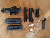 Mit dabei ist einiges an Zubehör (Magazin, zusätzlicher handguard, Schienen, ZF - beleuchtet - von Umarex... dieses ist komplett neuwertig und wurde noch nie benutzt). Und eine schlichte Waffentasche in Tan😊.