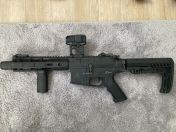 Ich biete hier diese Begadi Arcturus M4 Hybrid Mur Mod C SBR mit einigen Umbauten und Zubehör an. Sie ist ziemlich genau 2 Jahre alt und hat mich treu bis vor 1 Jahr auf allen Spieltagen begleitet. Zustand ist dem Alter entsprechend gebraucht mit ein paar Gebrauchspuren (siehe Bilder). Technisch ist sie voll funktionsfähig und hatte immer ein sehr geiles Schussbild. Meiner vorherigen HPA stand sie in kaum etwas nach. Funktionstest habe ich durchgeführt.