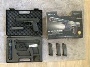 Optisch hat die Knifte aufgrund des Alters und dass wir sie gespielt haben logischerweise Gebrauchsspuren, die aber nicht wirklich schlimm sind (siehe Bilder). Der originale Lieferumfang bis auf die Kugeln ist vorhanden, so wie wir ihn gekauft haben. Schalldämpfer, Laser Licht Attrappe, Laufreiniger, Karton, Koffer. Wer eine gut funktionierende, sehr leise Backup sucht (gerade für Sniper), ist hiermit gut beraten.