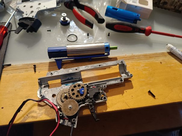 Ja der Titel ist etwas schwammig, aber weiß nicht wie ich es besser zusammenfassen soll. Also ich habe starke Probleme nach einem Umbau meiner SA H020. Ich hatte vorher Probleme was die Genauigkeit anbelangte, die kugeln zogen mal links, mal rechts mal hoch mal runter, also habe ich mich entschieden, wenn schon rumbasteln, dann gleich richtig. Habe also den 27cm durch einen 36,5er lauf getauscht, das Hopup durch eine Begadi Neptun mit 7mm Patchfläche, und dann wegen mehr Luft, den Zylinder durch einen geschlossenen und dann gleich Pistonhead, Zyliderhead und Nozzle durch Begadi Pro teile ersetzt. Die Nozzle ist gleichlang wie die alte. Also, eigentlich alles neu. Tja nur habe ich erst das Problem gehabt, dass das System erst nicht richtig dicht war, und man zwischen 0,03 J (Ja die Null ist richtig) und 1,2J raus holt. Je länger man hintereinander geschossen hat, desto besser wurde es, aber immer nur kurzfristig. Also alles nochmal auf, ordentlich sauber gemacht und einen Begadi Pro Piston verbaut, da der alte schon etwas gelitten hatte. Danach hatte ich kurz 1,8J aber dafür hat nur noch jede zweite Kugel gefeedet. Naja, dachte halt die Nozzle macht zu dicht, also eine Shimm fürs Neptun rein und nochmal probiert. und dann war nicht nur die Performance wieder im eimer, (0,2-1J) sondern das feeden lief auch nicht besser...Also die Shimm wieder raus, womit sich die Joule auf recht stabile 1,24J eingestellt hat, dafür wird das feeden immer schlimmer. nur noch jede 3. bis 4. wird beschleunigt, Kugeln kommen aber immer im Hop an. die Nozzle ist nicht im weg. auch über kopf passiert nix. also habe ich die befürchtung das auch da was nicht dicht sein könnte... Aber hhabe leider keine Ahnung was, und wo. Hat jemand einen Sinnvollen prüfablauf wie ich das ganze eingrenzen kann, was ich tun kann? weil ich habe keine Ahnung mehr, und es ist halt mein erster Umbau in der Art.
