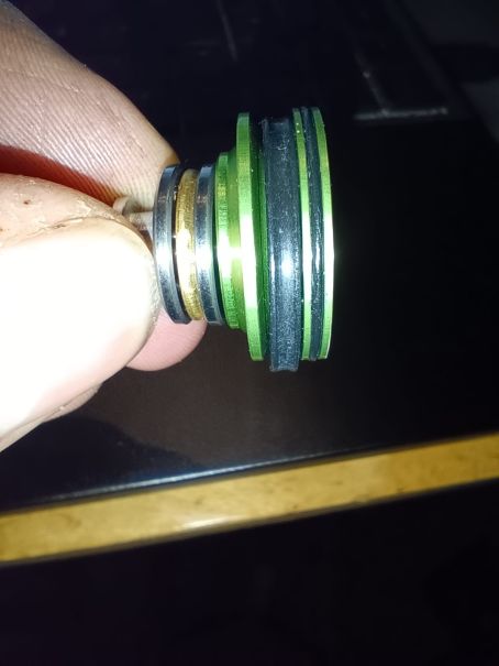 >> Habe ein Doppel O ring drauf. Also eine kleinen dünnen vorne am Pistonhead und dann ein locker sitzenden dahinter. siehe foto.
