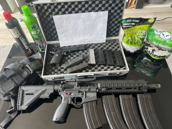 Airsoft Set – HK416 A5 GBB + Raven 1911 MEU + Magazine + Zubehör